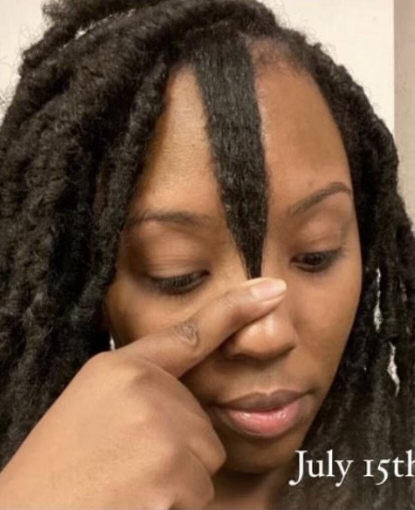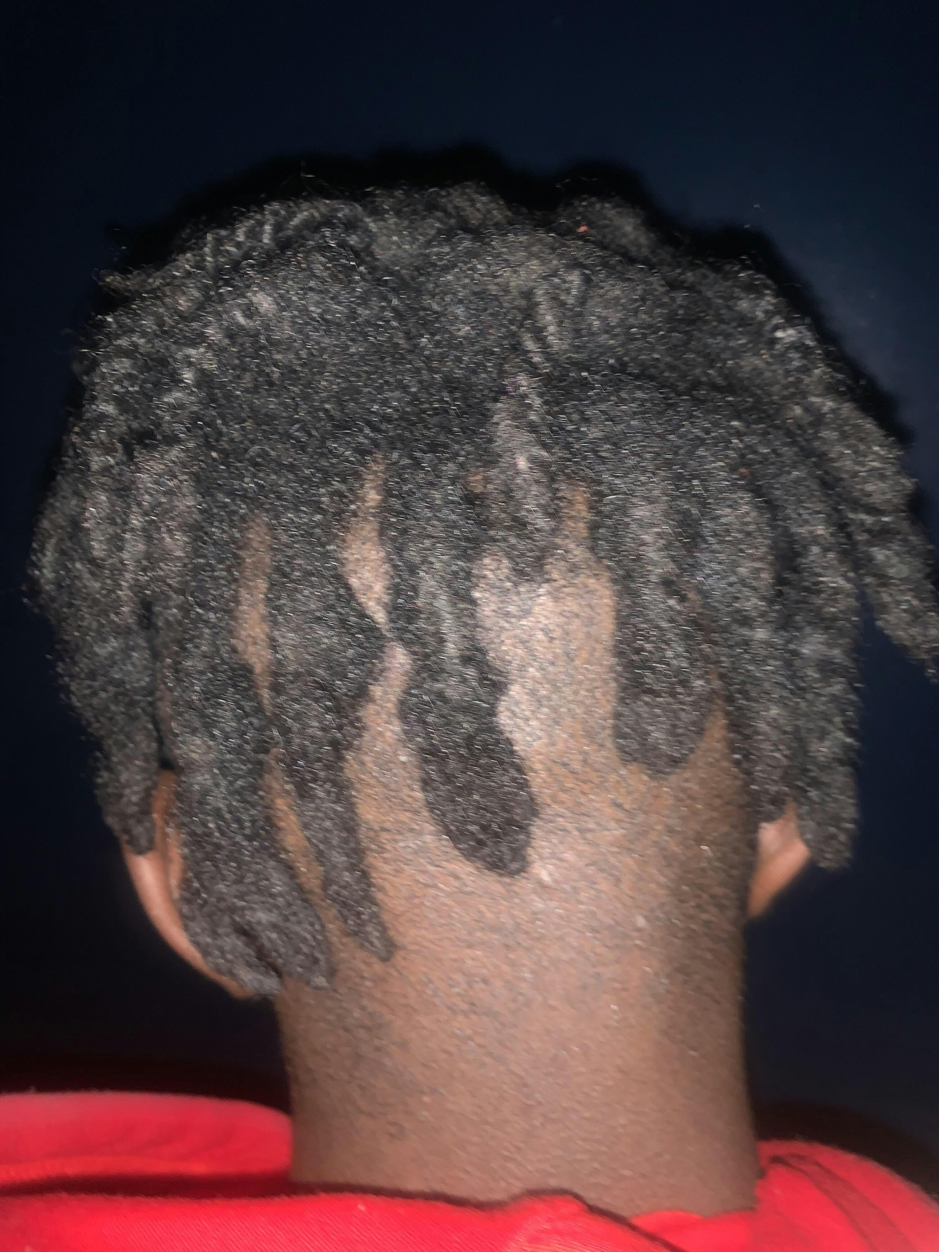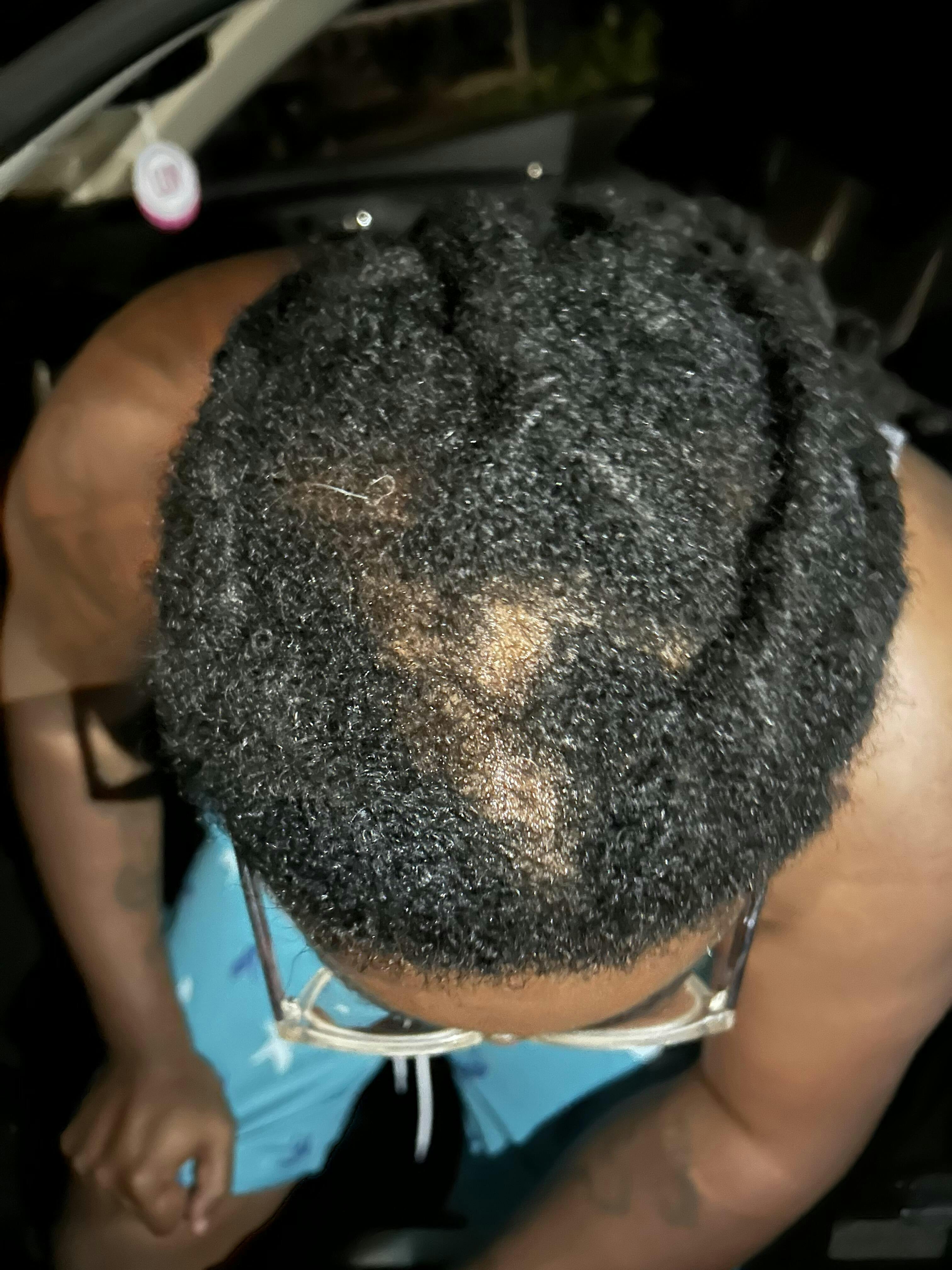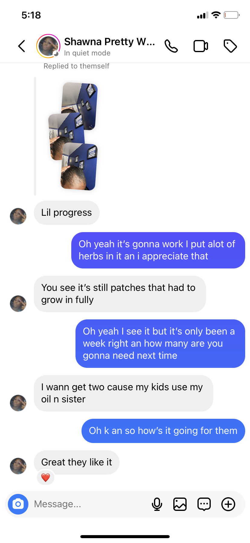 When I tell you I was about to give up and just cut my hair off my friend recommended me about this oil I thought it wasn’t gonna work I started using it in the back I have a patch I noticed people started telling me my hair growing back and I noticed it started growing in it only been three weeks now since I been using it